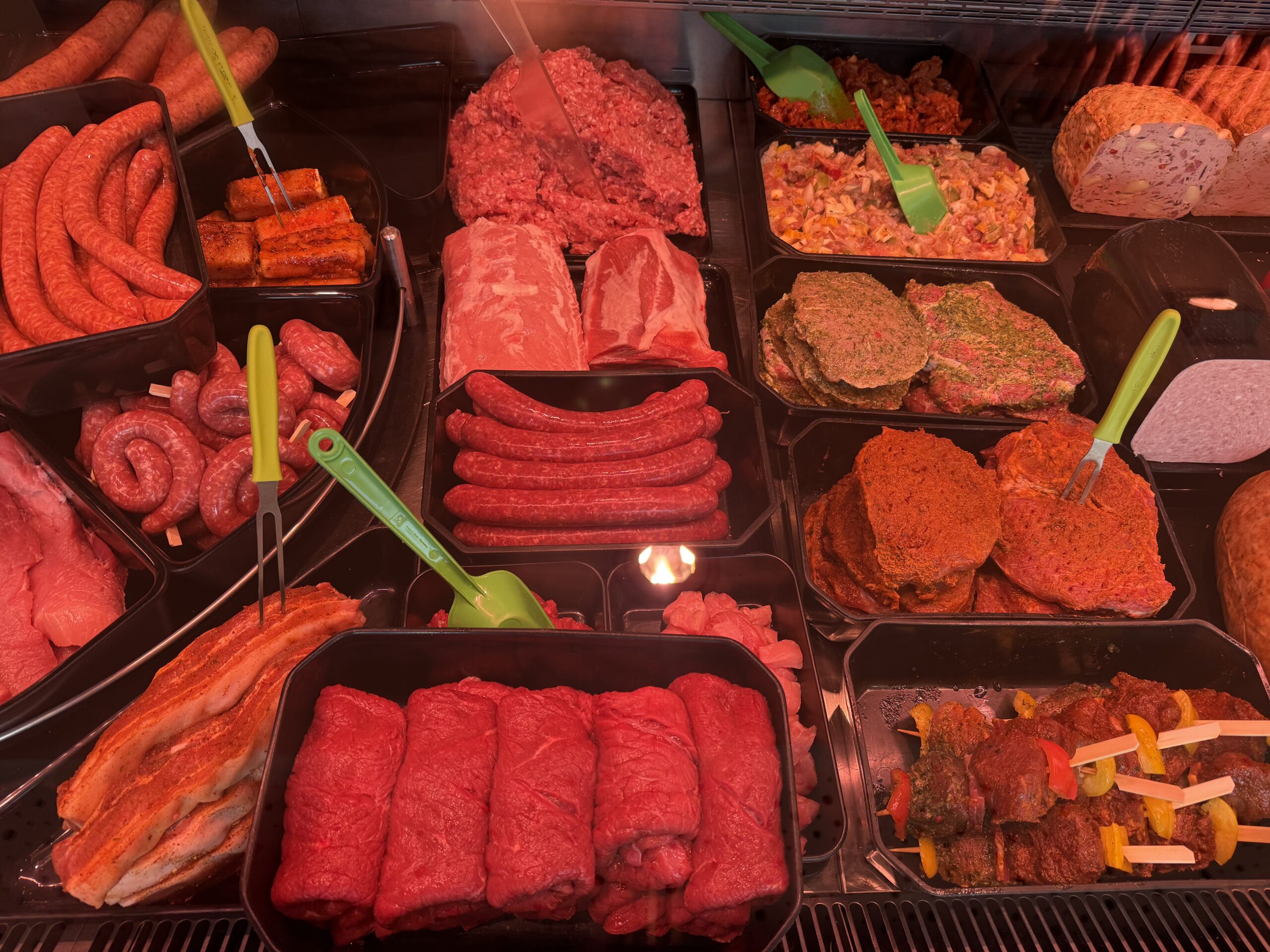 Wir achten bei der Auswahl unserer Waren auf die Fütterung und Haltung der Tiere. Ob aus eigener Schlachtung oder vom Händler unseres Vertrauens, Frische und Qualität garantieren wir Ihnen1